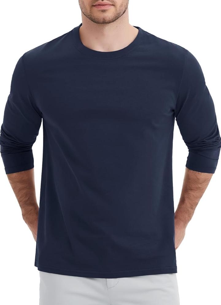 These Men's Navy Blue Round Neck Long Sleeve Shirts are always a cool-weather favorite. Make a statement with the regular fit design of this classic t-shirt, designed to enhance your physique, and complete your stylish ensemble.